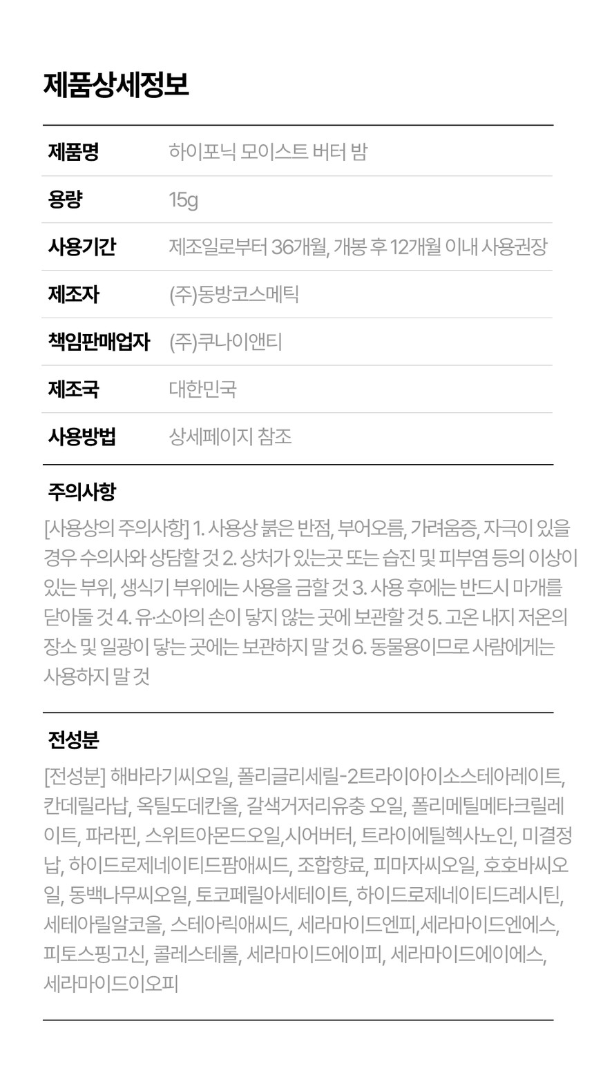 하이포닉 모이스트 버터 밤 15g